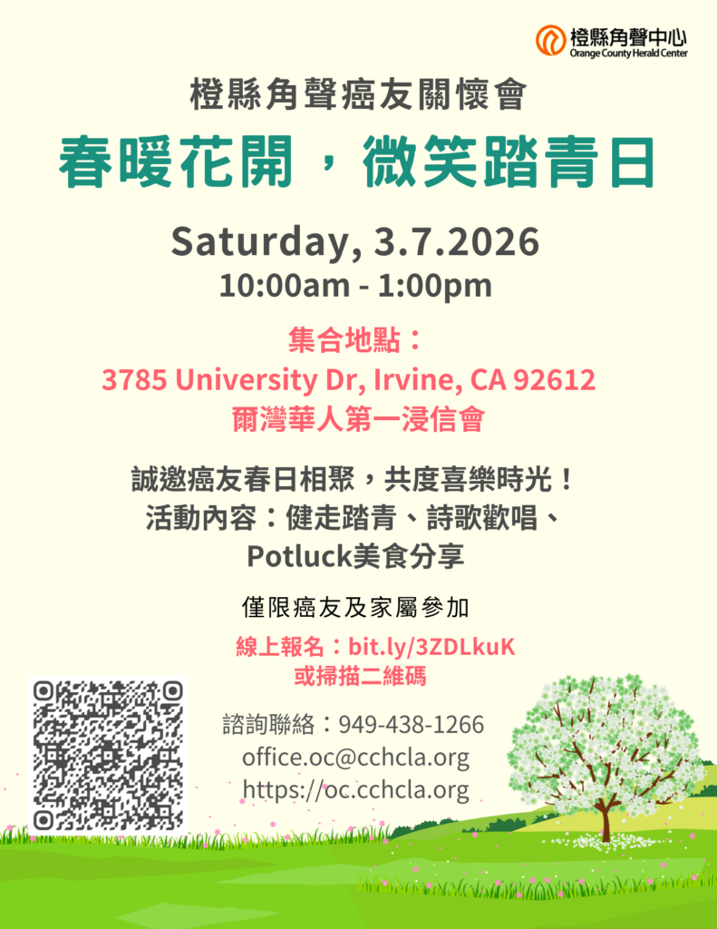 3/7/2026 ⟪春暖花開 微笑踏青日⟫癌友關懷會 February 20, 2026 / Cancer, Event Review, 近期活動 Latest Events 週六,3/7 陽光普照,初春暖意上心頭,協工團隊開心的迎接癌友們一起出發到William Mason Park 踏青,沿途談笑交流,甚為愉快. 步行後大家聚集室內,歡唱”盡情微笑” 美好詩歌,氣氛温馨融洽. 正如歌詞所述: “盡情的微笑,別害怕憂傷,勇敢的相信,明天有陽光…., 再次昂首踏出信心的腳步,神必陪伴你走每一步路.” 我們願以愛和鼓勵陪伴癌友們同行抗癌路!💏👩❤️👩👩❤️💋👩午餐時間大家共享各人帶來的拿手好菜,每一位都吃的開心飽足,並期待在六月份的聚會再相見! ♥️