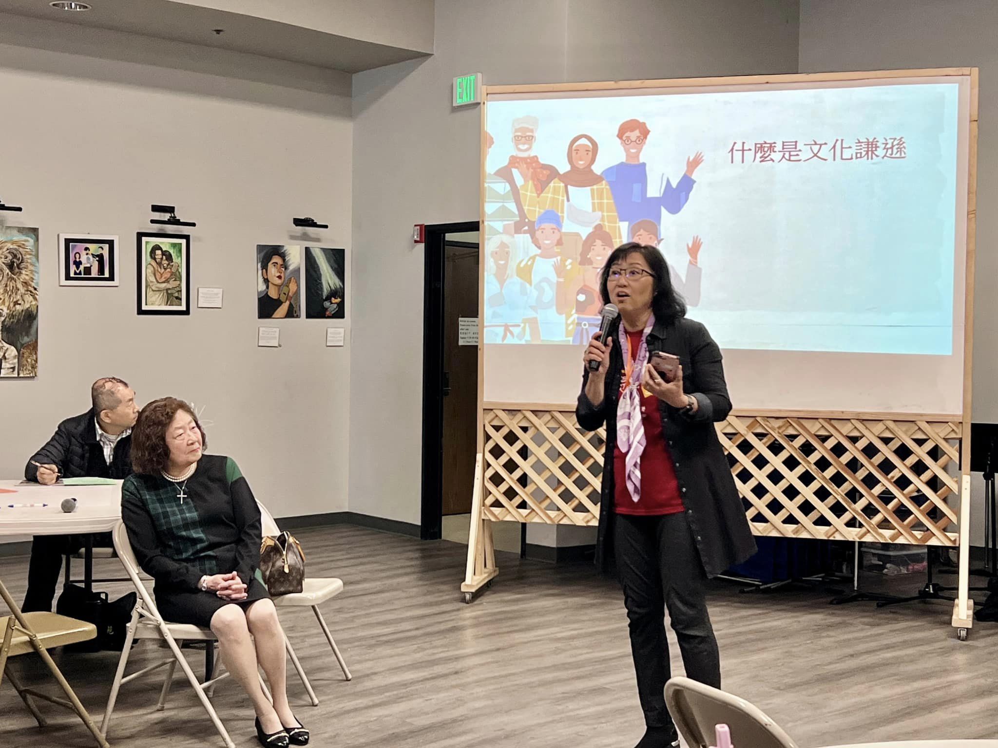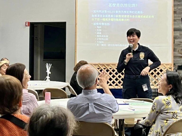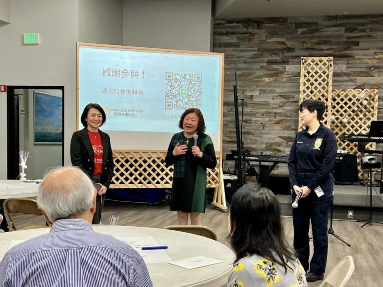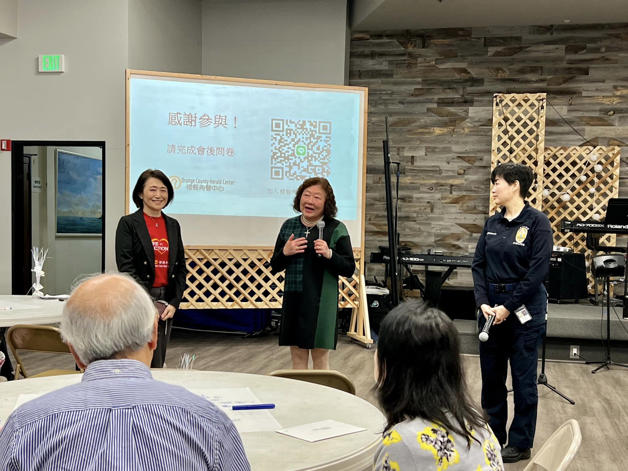 橙縣角聲 與 愛恩長春大學 於5/21合辦了《長春常綠安全講座》,將近40名銀髮族的橙縣居民一同學習一些貼身卻又不常談論的話題:仇恨犯罪和仇恨事件的分別、目擊仇恨時怎麼辦、如何舉報仇恨、如何適應多元社會等。雖然課題有點沉重,但專題講員、服務爾灣警察局的蘇玲雍警佐風趣生動的教學和分享,令長者們踴躍發言、笑逐顏開。還有橙縣角聲的專任導師 Jennifer 講解什麼是文化謙遜、如何克服內隱偏見。在一片輕鬆愉快的氣氛下,大家也長知識了。