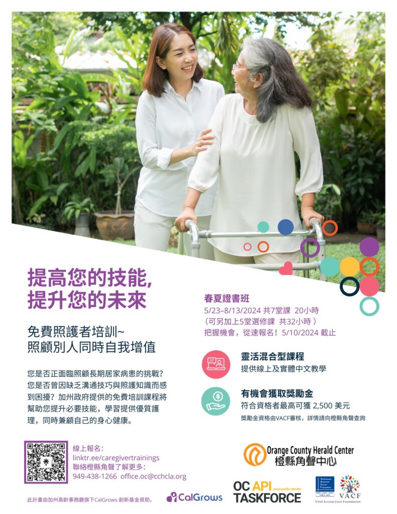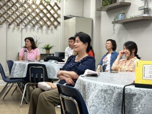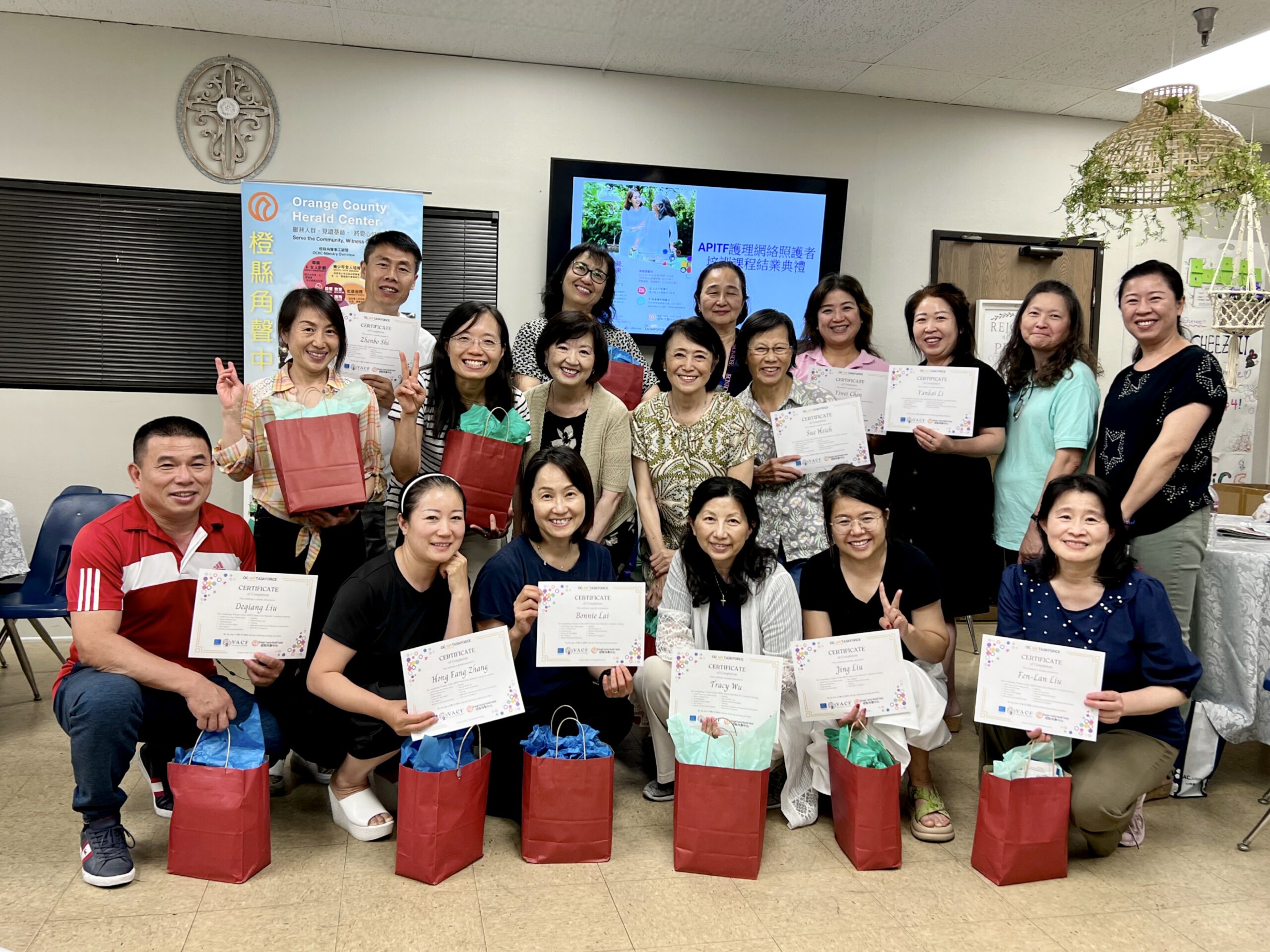 8/13/2024 加州政府照護者培訓課程結業禮 August 22, 2024 / Event Review, 機構連結, 社區關懷 歷時近五個月,由橙縣角聲參與製作及籌劃的加州政府免費照護者中文培訓課程於8月13日圓滿結束!該培訓課程包含12堂課,共32小時,結合實體與線上教學。學員們順利完成至少20小時的課程後,可獲得照護者培訓證書。 在8月13日的結業典禮上,近20名學員齊聚一堂,共同慶祝這一重要的里程碑。大家在輕鬆愉快的氣氛中交流分享,並感謝講師們的教導與鼓勵。此次培訓著重以人為本的照護理念,並強調照護者自我照顧的重要性;不僅為學員們提供了寶貴的學習機會,也有助於提升他們在未來照護服務中的能力。