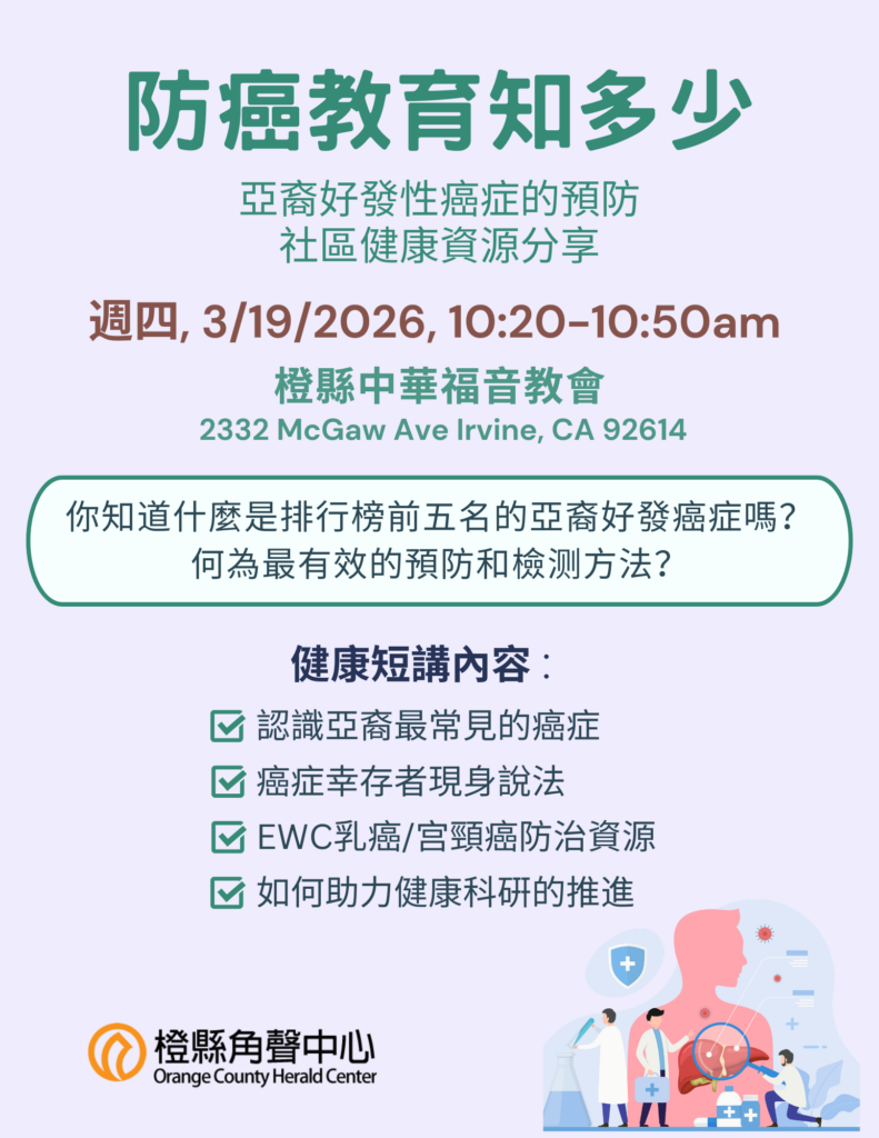 3/19/2026 防癌教育知多少 Cancer, Event Review, 近期活動 Latest Events / March 10, 2026 3/19/2026 防癌教育知多少 Read More »