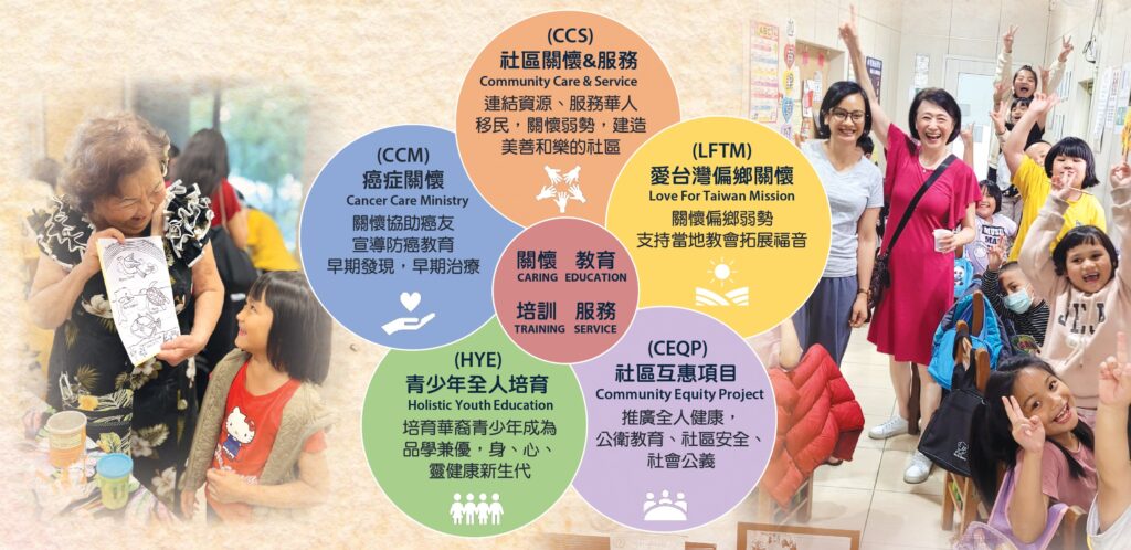 我們跨教會的基督徒團隊以關懷、教育、培訓、服務作為推廣各項事工的主軸,藉著社區資源整合、夥伴機構連結、活動策畫宣導、與協工造就培訓,不斷開展度教育和健康相關的服務,並更深度的落實與學術醫療機構合作的心理健康和防癌計畫。